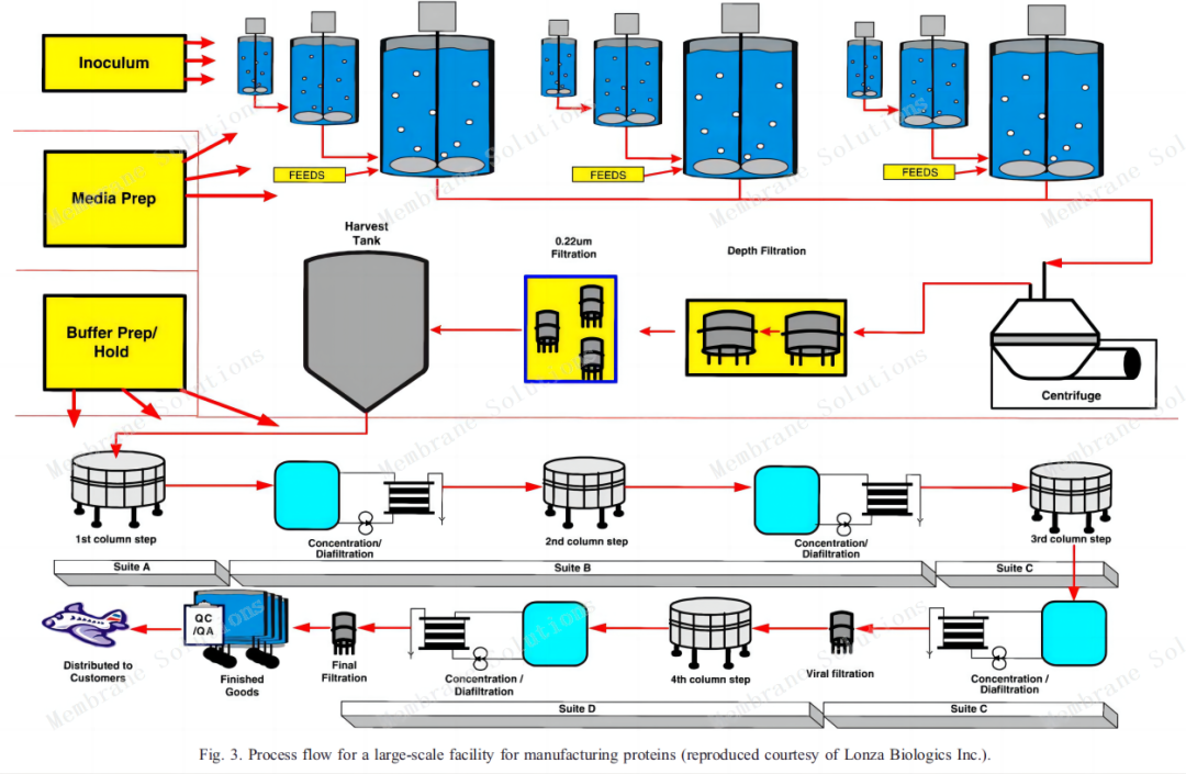 其中過濾在其的不同工藝階段都有很廣泛的應用,主要有培養(yǎng)基的除菌過濾、氣體的除菌過濾、緩沖液的除菌過濾、死細胞和細胞碎片的澄清過濾,超濾濃縮、層析純化、終端產(chǎn)品的除菌過濾、除病毒過濾等。